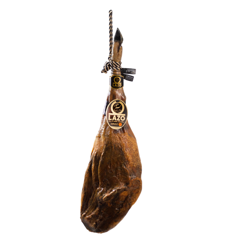El jamón de bellota 100% ibérico Denominación de Origen LAZO es un producto único, elaborado de forma artesanal y procedente de cerdos ibéricos criados en libertad en las dehesas del Parque Natural Sierra de Aracena y Picos de Aroche y Badajoz, con una alimentación natural con bellotas durante la montanera. Estas características le confieren al jamón esa propiedad tan extraordinaria de grasa infiltrada llena de sabor y matices.